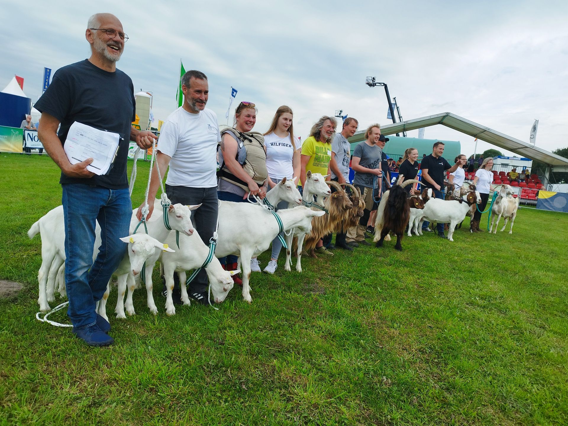 Ein imposantes Bild alle Züchter und vorgestellten Ziegen in der Aufstellung
